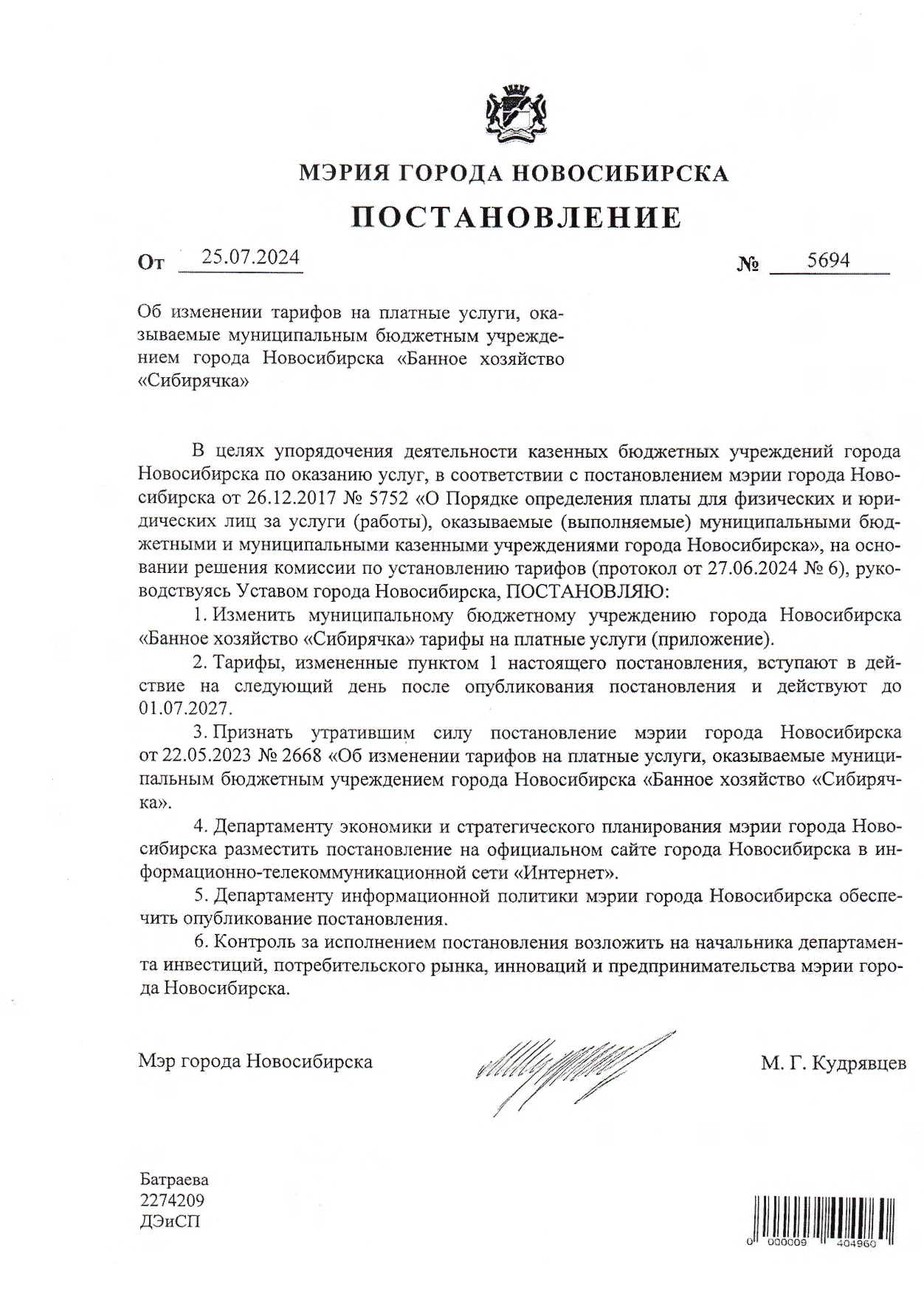 Постановления, распоряжения мэрии г.Новосибирска